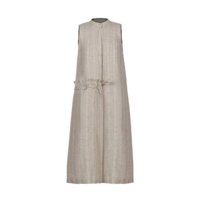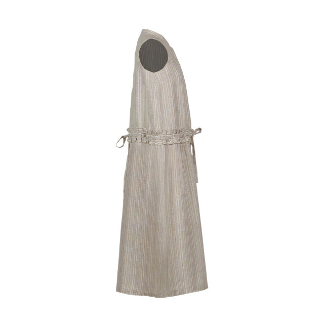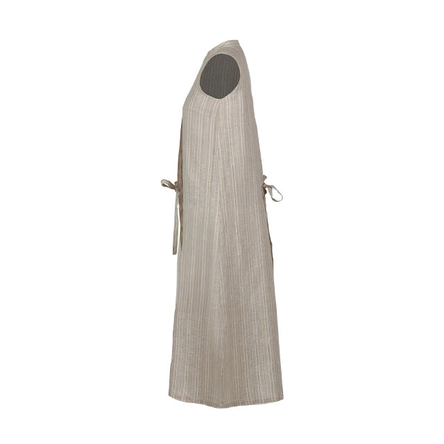 Linen Sleeveless Dresses – Khaki - Gold Stripes