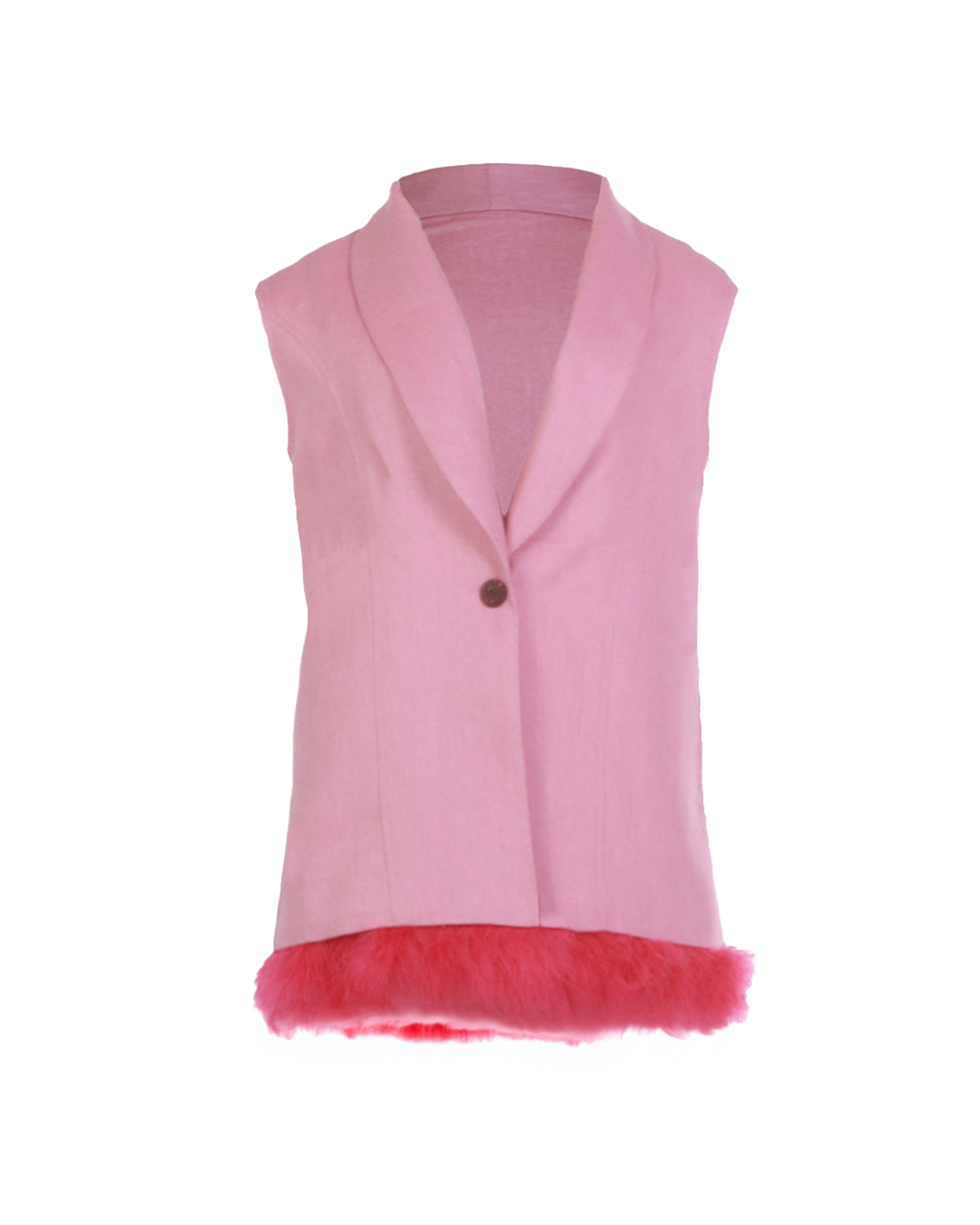 Linen Vest Pink, paired with Pink Linen Wide-Leg Trousers, is a perfect blend of luxury and comfort. Made from high-quality linen, the fabric is lightweight and breathable, making it ideal for special occasions. The vest design that adds dimension and sophistication, while the pink wide-leg trousers enhance the overall elegant and polished look. This outfit is perfect for parties, celebrations, or any event where you want to achieve a refined and unique style.