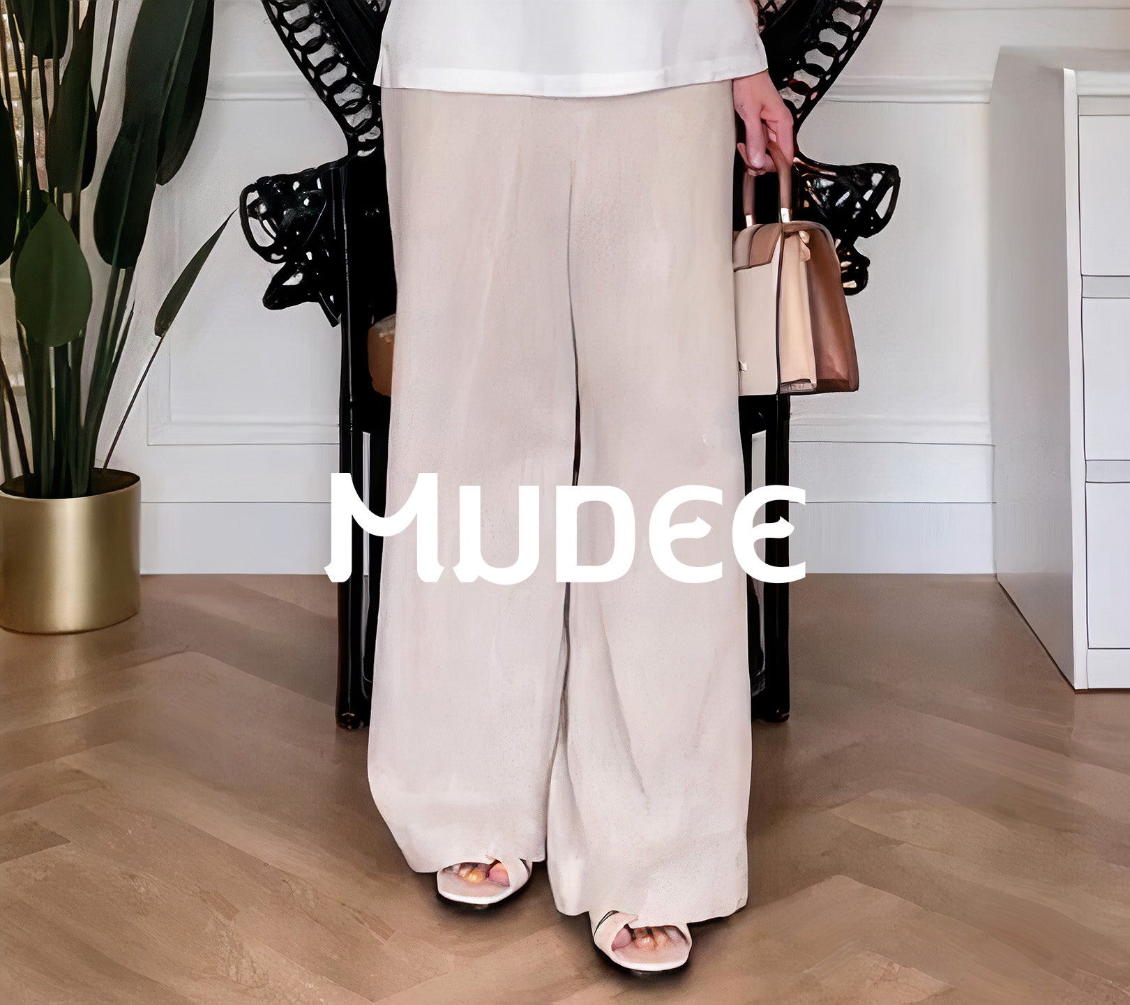 - Design: Wide-leg, natural color, full length