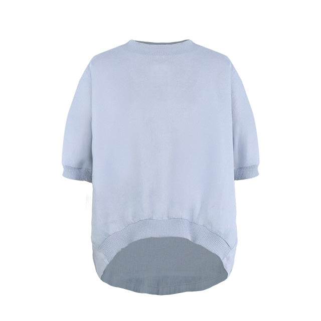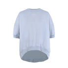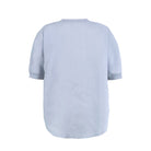 Round-neck linen blouse with front elastic waist. Made from premium-quality genuine linen, featuring a round neckline and three-quarter sleeves with cuffs for a sweet, feminine look. The natural linen fabric provides a soft, gentle touch against the skin.