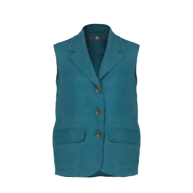 Experience a relaxed yet refined look with this sleeveless green blazer, crafted from soft, breathable linen for all-day comfort. Featuring an elasticized back for a touch of effortless sophistication, it pairs beautifully with tailored trousers for a polished outfit or with jeans for a laid-back style.