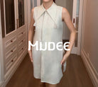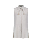 • Design: Sleeveless blouse with a tassel-trimmed collar for a unique flair